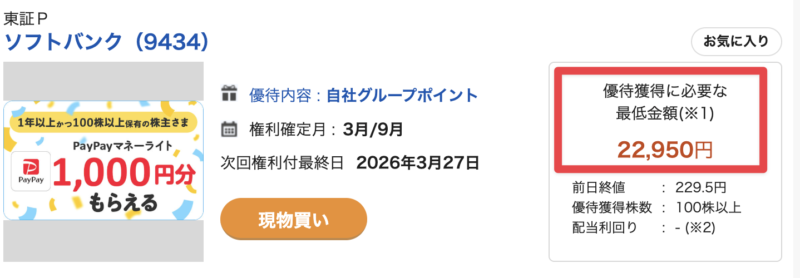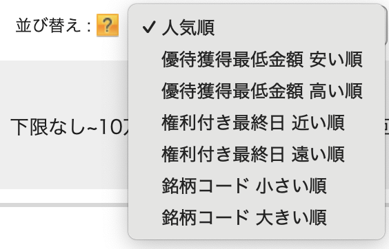 もしくは「優待獲得に必要な最低金額」の項目で、ご自身が無理のない可能な金額を設定しましょう。