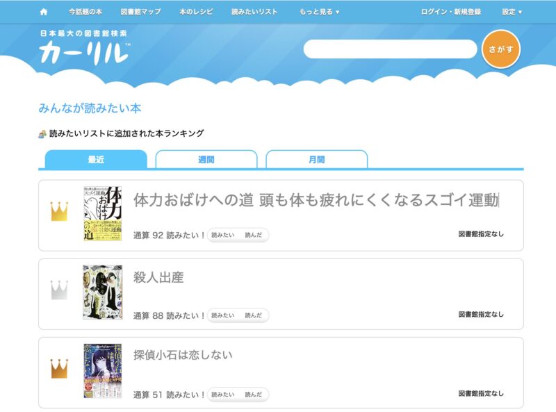 最後にカーリルの「みんなが読みたい本」で、一般大衆がいま図書館で何を求めているかという「リアルタイムな需要」を把握します。