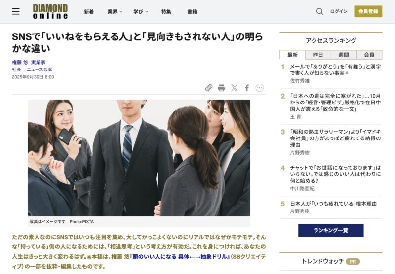 特にダイヤモンド・オンラインの「ビジネススキル」では、書籍の内容の半分ほどが記事として公開されているため、まず記事を精読します。「これは深掘りしたい」と感じたら、迷わずその本を借りるという判断基準に。