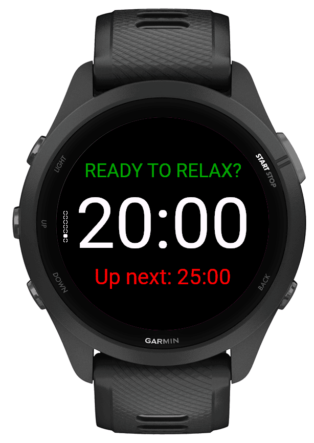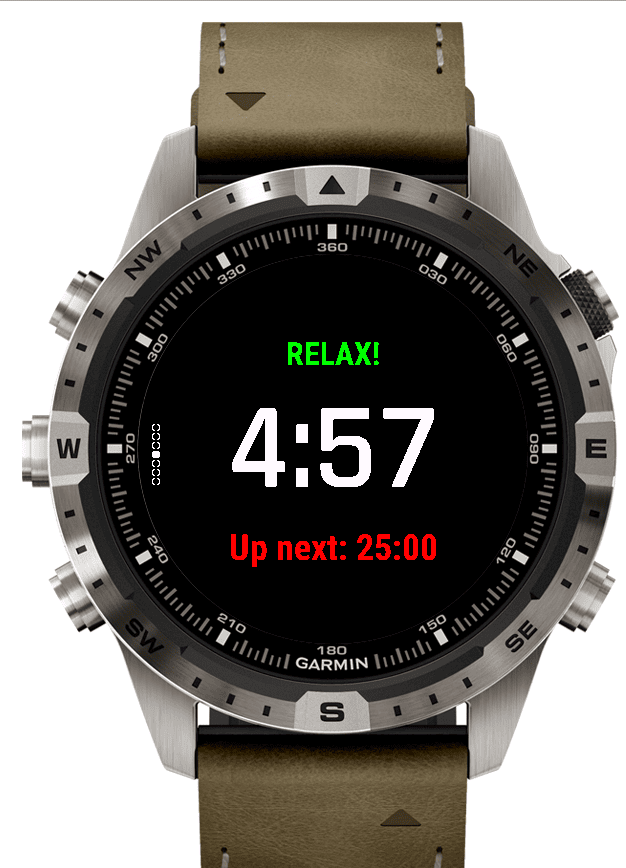 Garminで使えるアプリをダウンロードできる Connect IQ Store にある「Background Pomodoro」は、Garmin vívoactive5上で静かに動作するポモドーロアプリ。25分の作業と5分の休憩を自動で繰り返し、終了時には軽い振動で知らせてくれる。画面を見続ける必要がなく、スマホを開く回数が減りました。